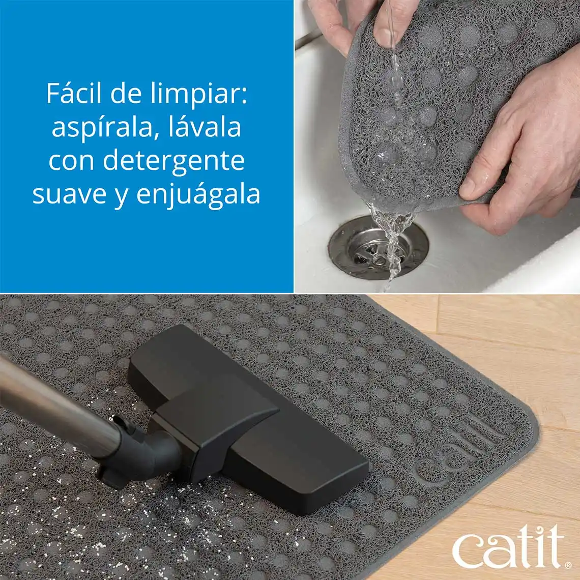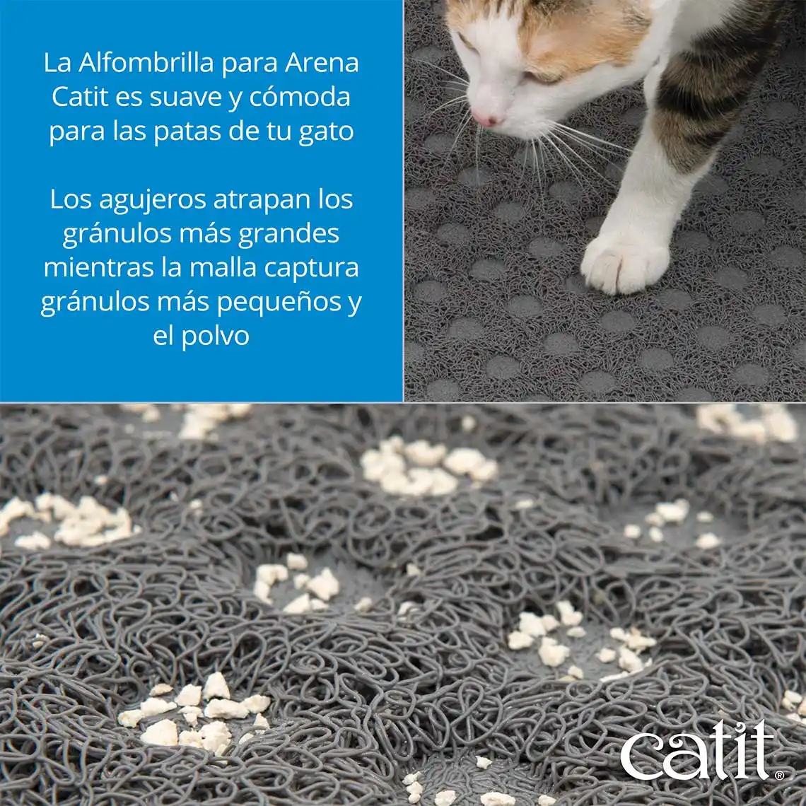 Ayuda a mantener tu suelo libre de arena para gatos — La alfombra para areneros Catit mantendrá tu suelo libre de arena para gatos. Al ser antideslizante se mantendrá perfectamente en su sitio. • Con textura para ayudar a capturar la arena y evitar que haya arena por todo el suelo. • Superficie suave y antideslizante. • Fácil de limpiar. • También disponible en tamaño grande. • 40 x 60 cm