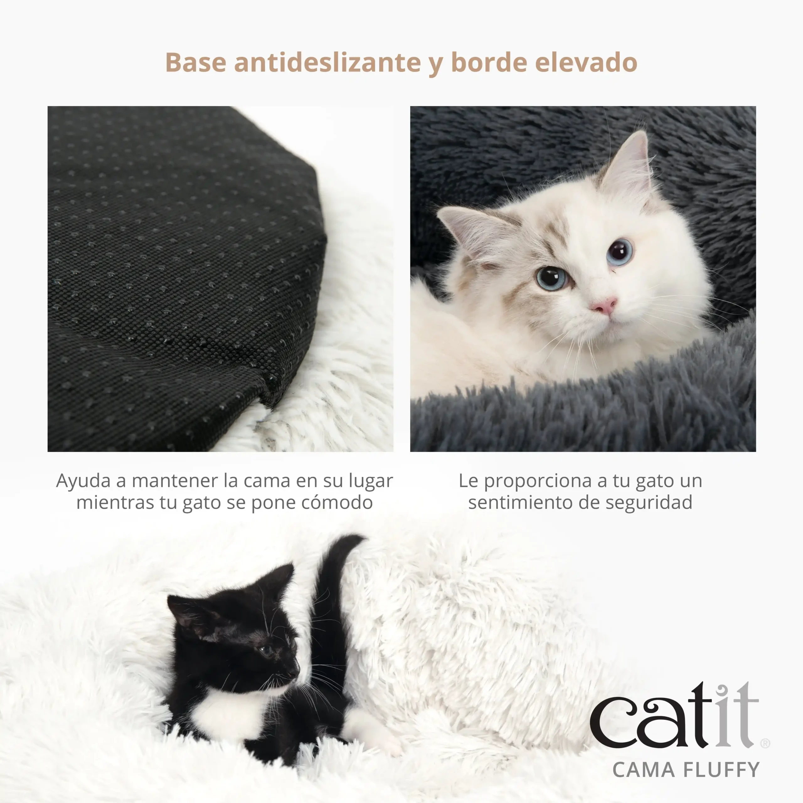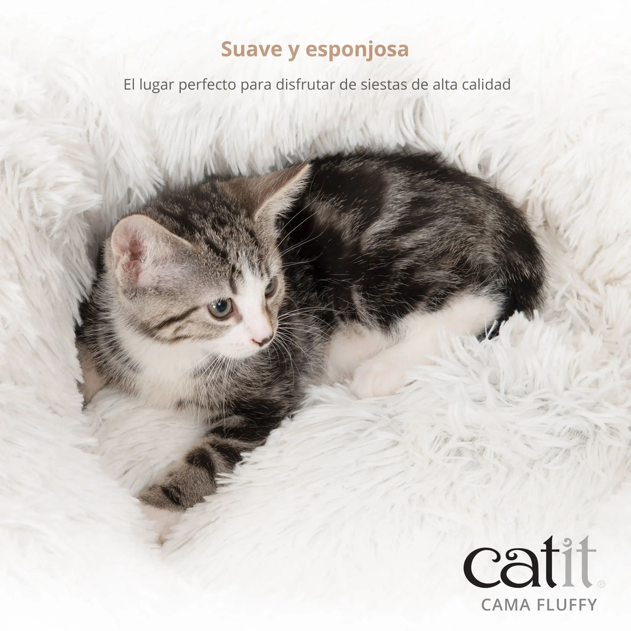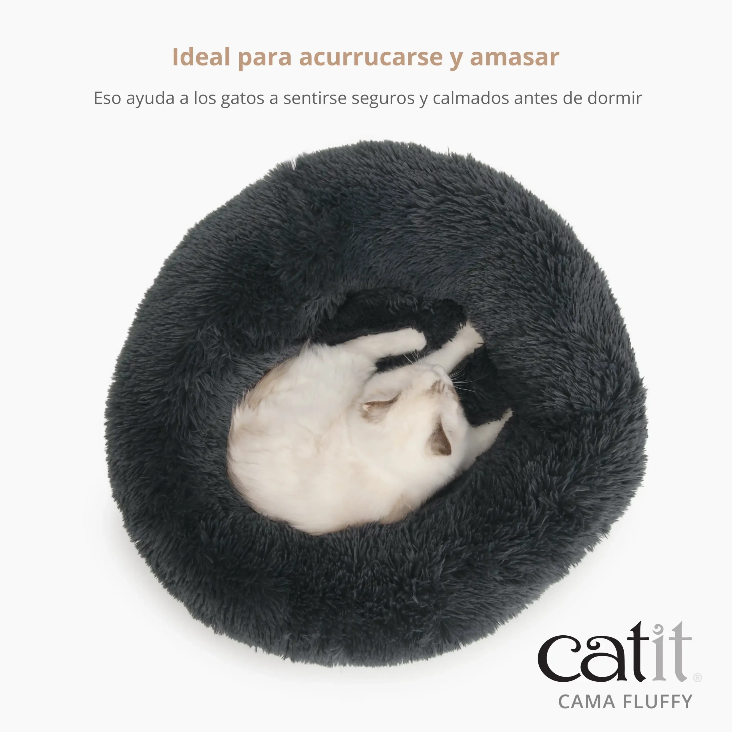 Cama para gatos ultra suave — Las camas Catit Fluffy son exactamente eso: espectacularmente esponjosas y suaves, con un borde elevado que invita a tu gato a relajarse, acurrucarse y amasar mientras se hunden en un sueño reparador. • El borde elevado crea una sensación de seguridad. • El relleno supersuave permite a los gatos amasar y acurrucarse. • Base antideslizante. • Extremadamente esponjoso. • 60 x 60 x 20 cm (⌀60 cm).