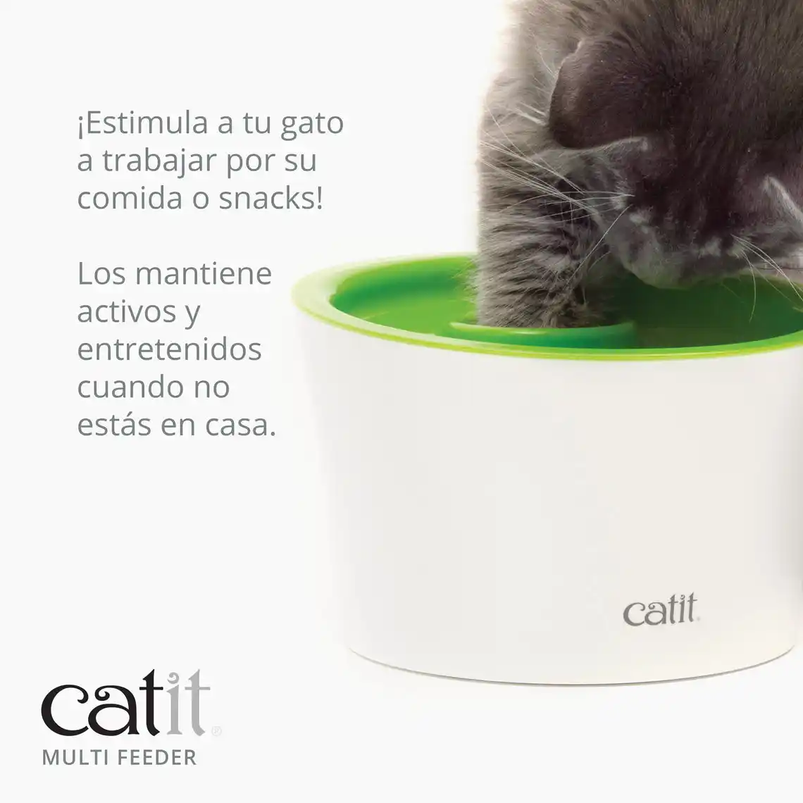 Comedero antivoracidad, una solución para comer lento — El Catit Multi Feeder estimula a los gatos a ralentizar su ritmo al comer, lo que ayuda a prevenir los atracones. Al esconder la comida de la vista se incentiva a los gatos a instintivamente usar sus patas para sacar la comida. • Estimula a los gatos a ralentizar su ritmo al comer, lo que ayuda a prevenir los atracones. • Superficie poco profunda para evitar que los sensibles bigotes de tu gato toquen el recipiente. • Espacio de almacenamiento interno para servir la siguiente ración de comida de forma rápida y fácil. • Diseño ergonómico a juego con la Catit Flower Fountain. • Hecho de materiales sin BPA.