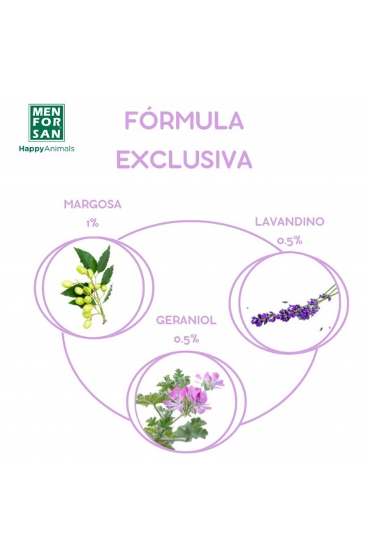 Seguridad Total: Con su base en ingredientes naturales como la margosa, geraniol y aceite de lavandino, MENFORSAN ofrece un nivel de seguridad sin precedentes. Puedes usarlo con confianza sabiendo que no causará irritación ni dañará el pelaje o piel sensible de tu gato.