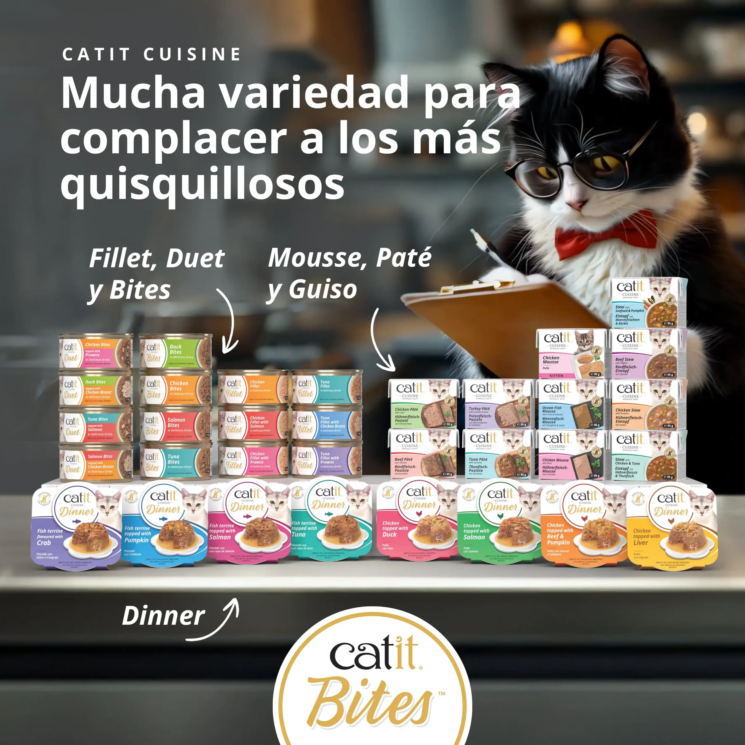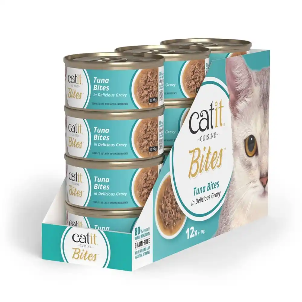Bocados jugosos y carnosos. — Catit Bites ofrece tiernas partes del tamaño de un bocado, perfectas para gatos que prefieren una comida más carnosa. Los bocados suaves y jugosos en una deliciosa salsa proporcionan comodidad y nutrición, ofreciendo un plato sin cereales con una textura satisfactoria que hará que tu gato quiera repetir. Elaborado con un 80 % de ingredientes animales de calidad. Tiernos bocados de carne o pescado de primera calidad. Deliciosa y rica salsa. Sin cereales. Con taurina y vitaminas esenciales. Disponible en 4 variedades.